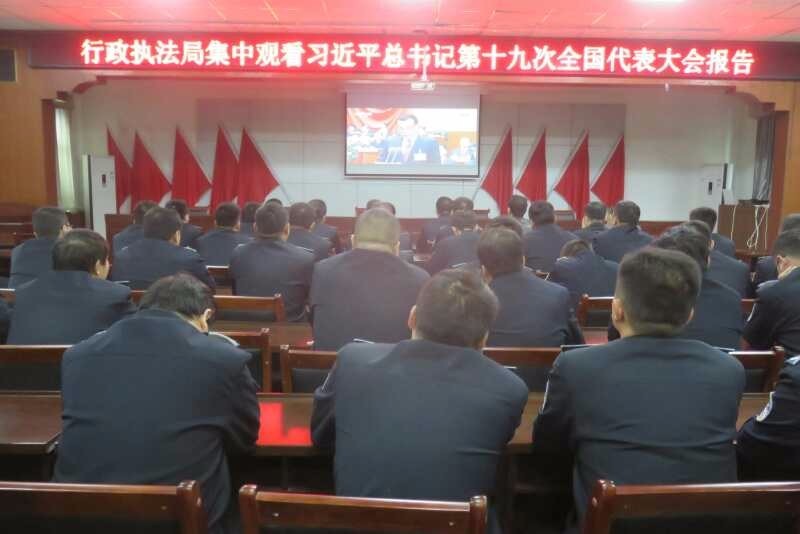 豪情满怀赞成就,砥砺奋进谱新篇。尉氏县行政执法局为深入学习领会党的十九大精神,进一步坚定党员干部对党的政治信仰,永葆党员干部本色和“不忘初心,牢记使命”的要求。以上率下,树标杆作表率,活用载体,互学互教,通过组织观看十九大重播录像、重温入党誓词、读报摘抄、撰写心得体会、开展演讲比赛等形式,掀起了学习贯彻十九大精神的热潮。